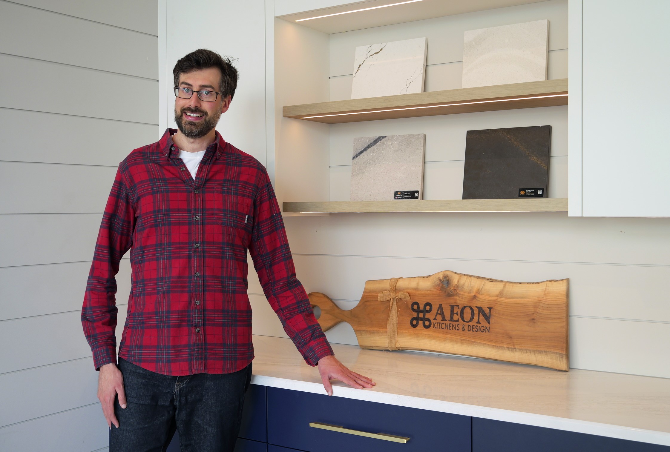 Founded in 2015 by Ross Burley, Aeon Kitchens & Design helps clients improve their homes look and feel and functionality with custom cabinetry solutions tailored to their unique needs. Burley is a passionate kitchen design expert with over 20 years of experience in transforming homes across South Georgian Bay and beyond. Burley started his career by completing the Industrial Woodworking Technician program at Humber College. After working as a cabinet maker, he went back to school—this time in a trades program at Fleming College that covered a wide range of skills from carpentry to plumbing to masonry. After completing the program, Burley worked as a kitchen designer and installer for over 6 years. He decided to shift his focus to providing his expertise to the local community—leading him to establish Aeon Kitchens & Design in 2015. Over the years, the business has expanded its core offering of custom cabinetry and countertops to include project managing kitchen renovations to allow clients to have a one-stop shop experience. Aeon Kitchens & Design opened its Collingwood showroom location at 1 First Street Unit 104 in 2019, which is continually being updated to show clients the latest cabinetry products and features available.